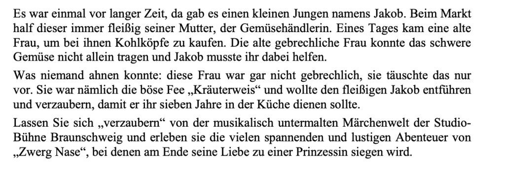 ZWERG NASE – ein Märchen nach Wilhelm Hauff
